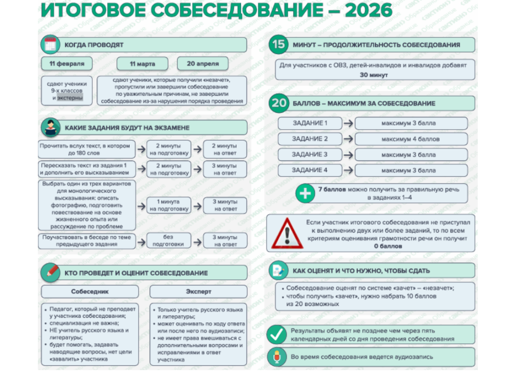 Основная дата проведения итогового собеседования — 11 февраля 2026 года.
